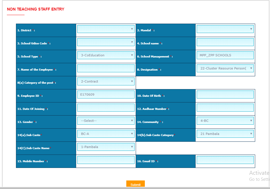Select Add Non-Teaching Staff(ఆడ్ నాన్ టీచింగ్ స్టాఫ్ ఎంట్రి ఎంచుకొండి)